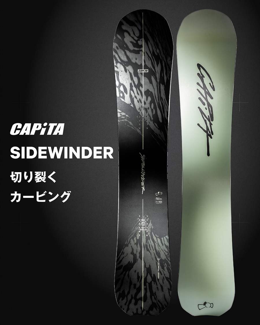 長めに設定されたブレンドカーブ(複合サイドカーブ)がスムーズなターンの入りを可能にしテーパードシルエットとアーティキュレーテッド・テールが力強いターンの抜けを実現します。Sidewinderは、あなたが山を支配し思いのままに攻める力を与えてくれるでしょう。
