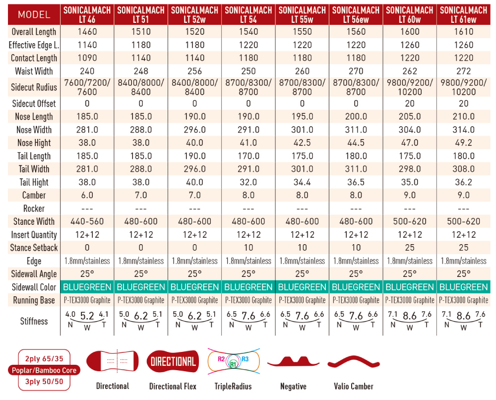 54,55w, 56ewはディレクショナルツインシェイプであり、最もランとトリックを融合したスタイル。60w, 61ewはややランに寄せたモデルで、ディレクショナルシェイプとセットバックしたスタンスによりスピード感のあるスタイルを実現することができる。