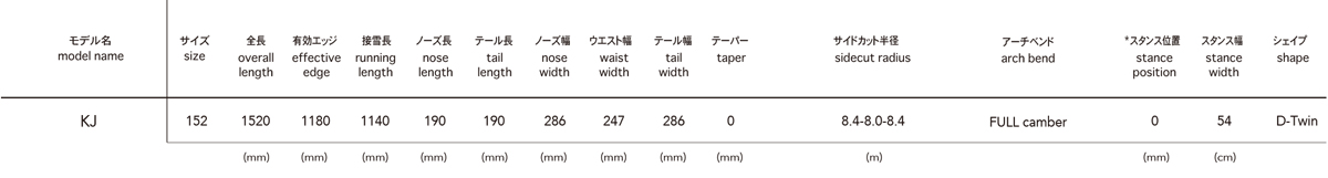 KJのサイズスペック