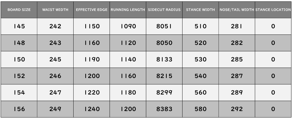 キャンバー形状が持つ反発力と安定性はしっかりと維持しつつ自在な操作を可能にするしなやかさをプラスすることで扱いやすく、繊細な動きにも素直に反応する高い操作性を実現している。ソフトフレックスによる足元の自由度の高さはグラトリとの相性が非常によく、プレス・バター・回し系などあらゆる技で抜群のパフォーマンスを発揮。軽快でリズムよく滑りたいライダーに最適な一本となっている。