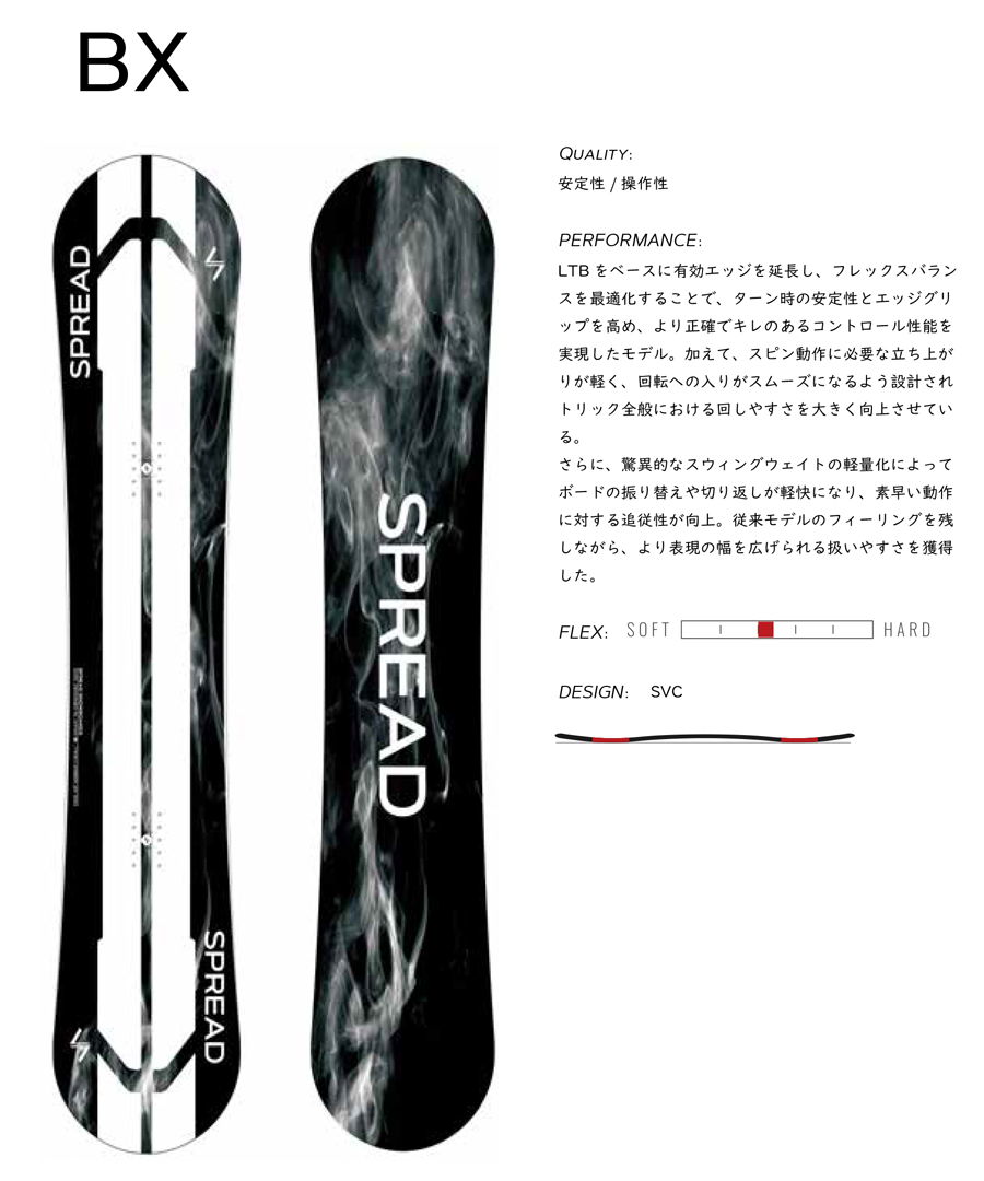 LTBをベースに有効エッジを延長し、フレックスバランスを最適化することでターン時の安定性とエッジグリップを高め、より正確でキレのあるコントロール性能を実現したモデル。