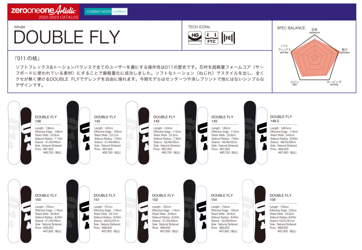 ≪2223 011Artistic / DOUBLE FLY [138cm~145cm]の在庫表≫