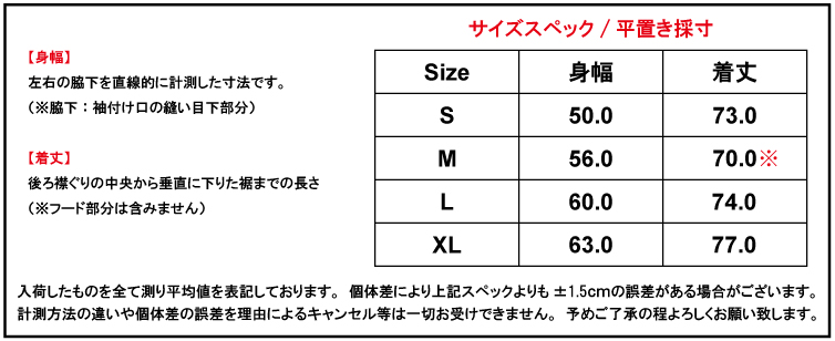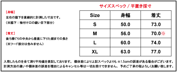 ▼【SIGNATURE PULL OVER FLEECE [BLACK] / サイズスペック】 ※カラーによってサイズが微妙に異なります。