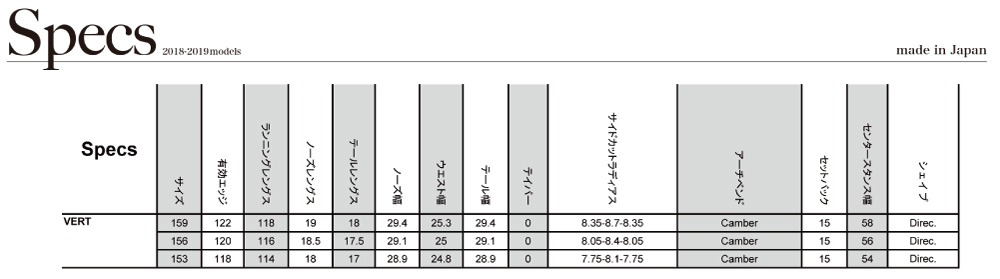 ≪18-19 NOVEMBER / VERTの在庫表≫
