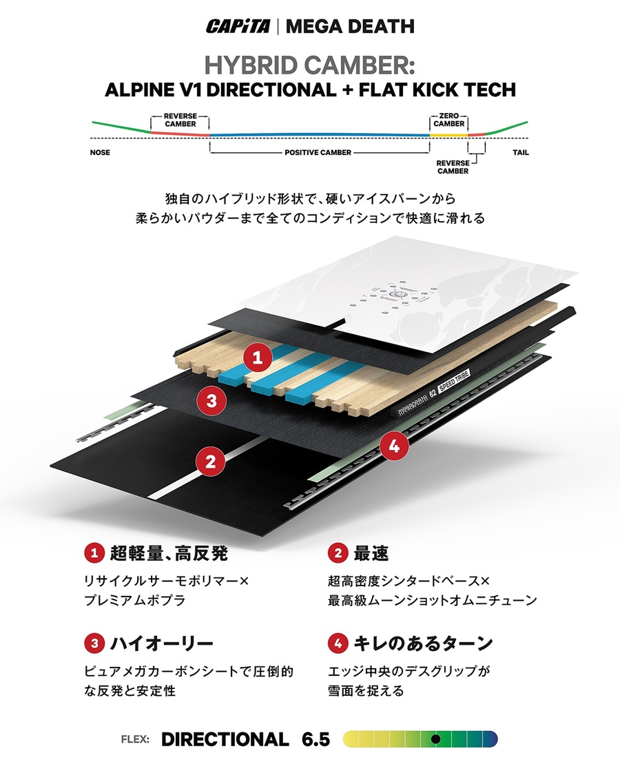 ピュア・メガカーボン™ で包まれたサーモポリマー・スターシップ・コア™ と、ファクトリーダイレクトのムーンショット・オムニ・チューン™ ストーングラインドが施されたメガドライブ™ XTベースにより、この「野獣」のようなボードは、あなたを想像を絶するスピード域へと推進させます。