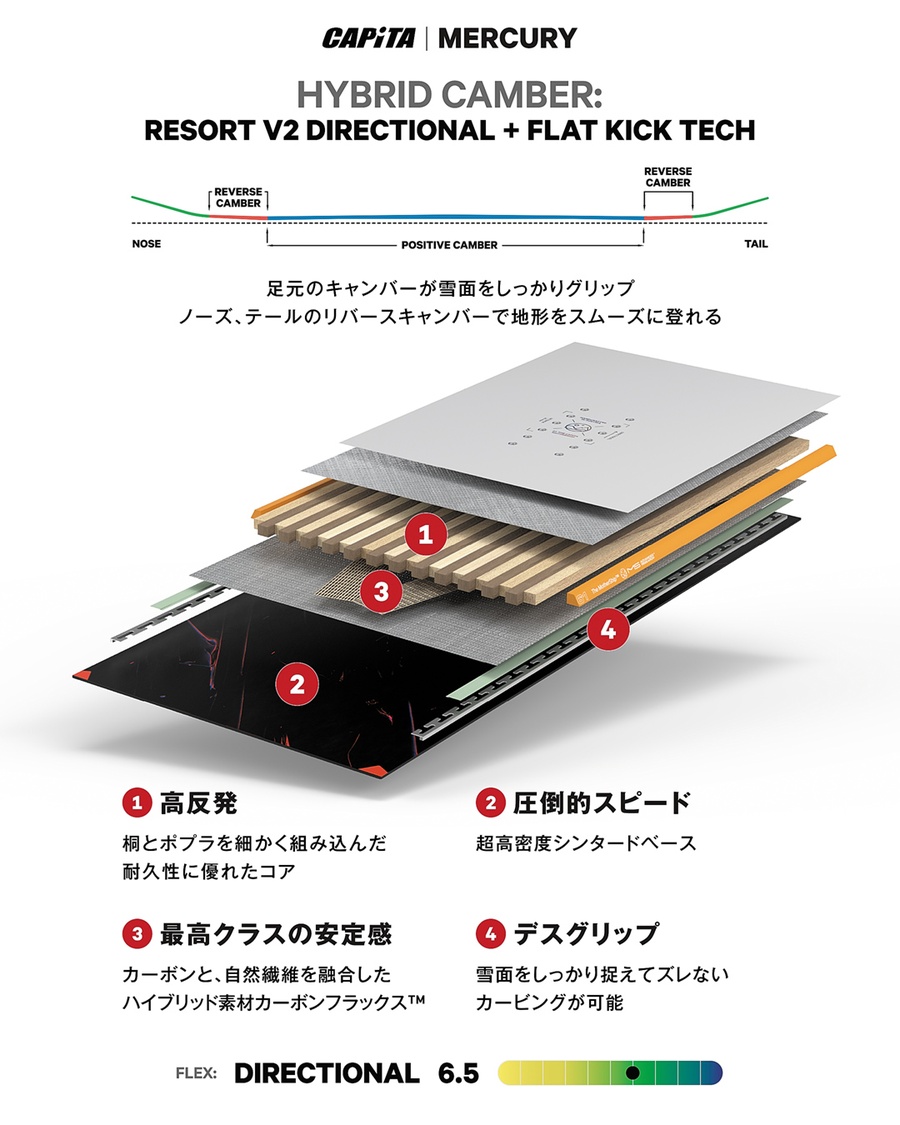 「Mercury」は、パワーが欲しい時にはパワーを、浮力が必要な時には浮力を発揮するように設計されています。「Hover Core™」、「CarbonFlax™ Amplifiers」、そして「HolySheet™ Tri/Bi ファイバーグラス」構成を採用し、その耐久性とオーリーパワーは最高峰に君臨します。
