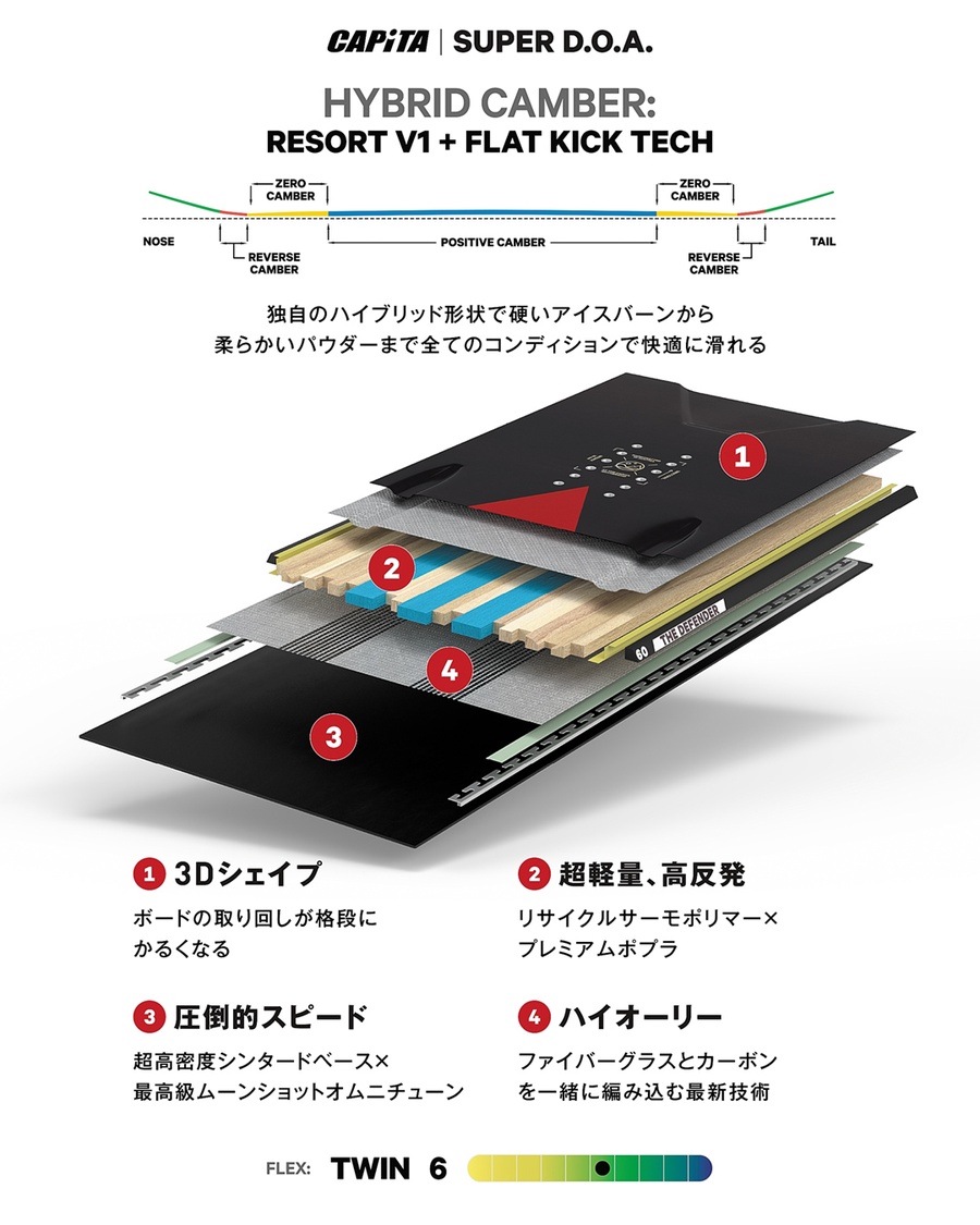 SUPER D.O.A. は、フェザーウェイト(羽のような軽さ)のハイブリッド・ホーリーシート™ トライ/トライ スーパーカーボン™ 構造と、ファクトリーダイレクト(工場直下)のムーンショット・オムニ・チューン™ を施したハイパードライブ™ ADV XTベースを組み合わせ、既に切望されているこのシリーズを新たな高みへと引き上げました。