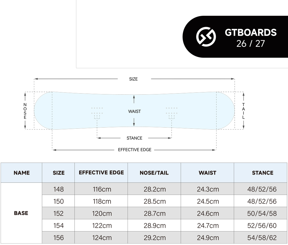 ハイブリッドキャンバー構造を採用した「BASE」は、あらゆるライディングスタイルの基盤となる扱いやすさと上質な操作感を備えたモデル。