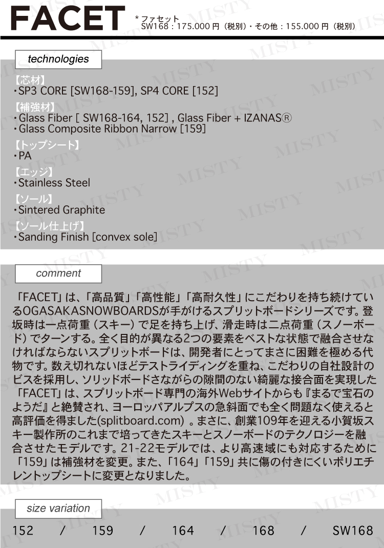 ≪21-22 OGASAKA / FACET [ROUND TAIL]の在庫表≫
